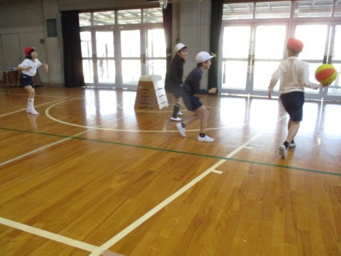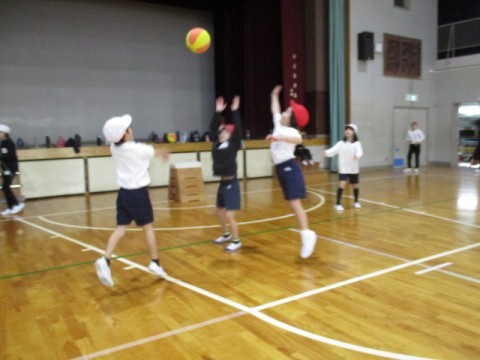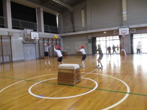 「ボックスハンドボール」の学習が始まりました。まずは試しのゲームをしました。