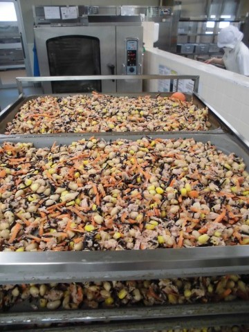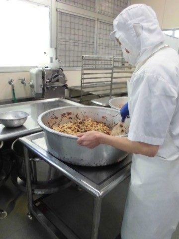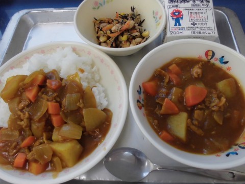 大豆やひじきは、子どもたちにとって人気な食材ではありませんが、「カレーもおいしいけど、サラダがおいしい!」とか「このサラダすき。」と感想を言ってくれる人がたくさんいました。玉ねぎのみじん切りと、からしが入った特製ドレッシングの味もよかったのかもしれませんね。