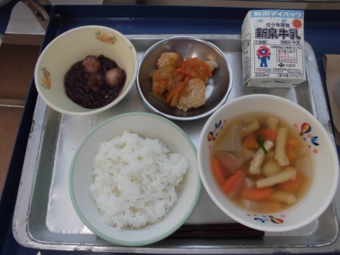 今日は鏡開きの献立として、白玉ぜんざいがでました。