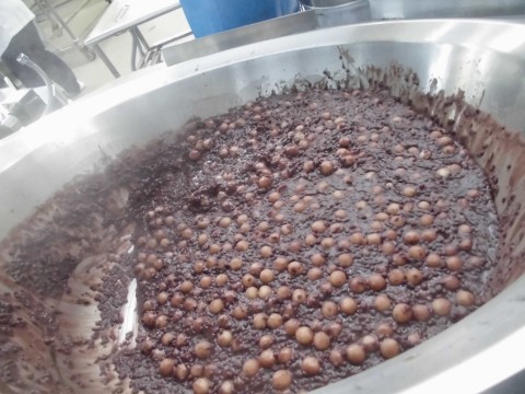 小豆の皮は固いので、コトコト2時間近く炊いて調理しました。でき上りは、ぜんざいというより、あんこもちのような仕上がりになってしまいました。子どもたちは食べる前から、あんこが苦手だとテンションが下がっている児童もいましたが、食べてみると「ぜんざいよりこっちのほうが好き」とか「あんこは苦手やけどこれは好き」とか感想を聞かせてくれました。返ってきた食缶を見ると、あんこだけきれいに食べて、白玉だけ残しているクラスもあり、子どもたちの反応が面白かったです。