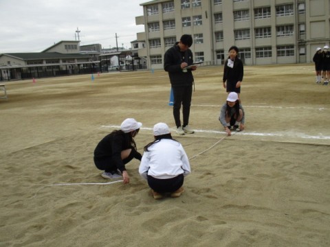 「走り幅跳び」の学習です。自分の記録を確認し,これからの授業に生かしていきます。