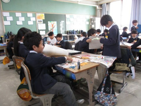 「紙はんが」の制作を進めています。いろいろな工夫が見られる,楽しい作品ができています。