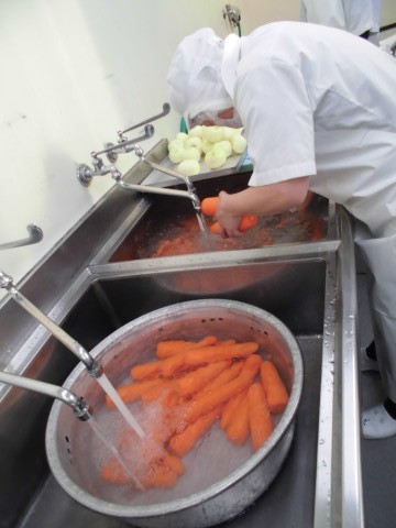 今日もたくさんのにんじんが納品されて、調理員さんは、3回しっかり洗ってくださっていました。