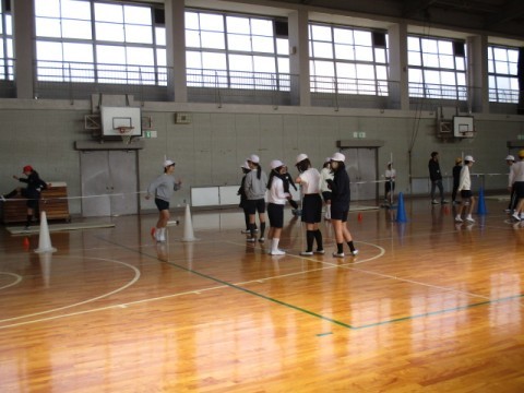 「走り高跳び」の学習を進めています。どうすれば高く跳べるのかを考えいます。