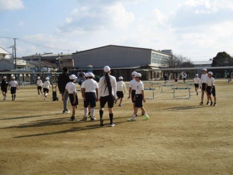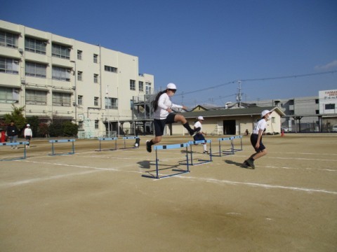 「ハードル走」の学習です。リズミカルにハードルを跳び越すためには,どうすればよいかを考えました。