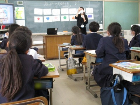 簡単な英語を使って,いろいろな「色」「形」の言い方を練習しました。