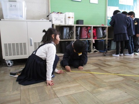 「長さ」の学習です。テープを使って,いろいろな物の長さを測りました。