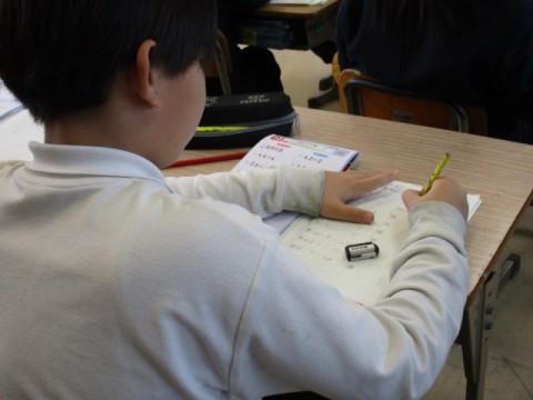 「小数のわり算」の学習を進めています。計算ドリルの練習問題に取り組みました。