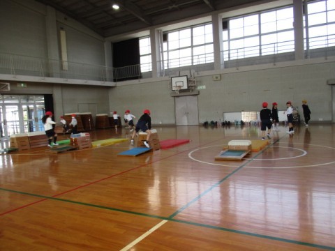 「跳び箱を使った運動あそび」の学習です。いろいろな跳び方や乗り方を楽しんでいます。