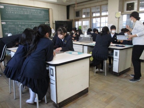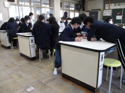 「発電と電気の利用」の学習です。手回し発電機を使って蓄電池に電気を貯められるかについて,実験で確かめました。
