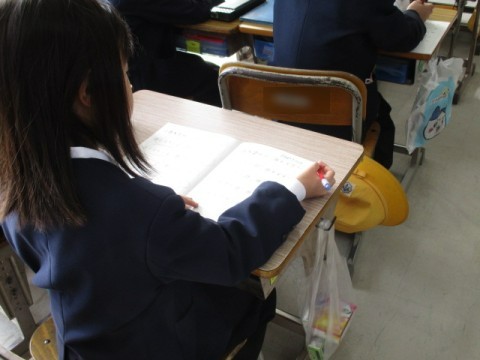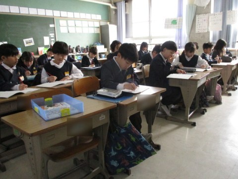 計算ドリルで九九の復習をしています。答え合わせは,自分たちで行います。