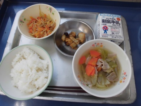 今日は和食の献立でした。さばのごまみそ焼きは、ごまとみそ、砂糖を混ぜたものをさばにかけて焼いたおかず。