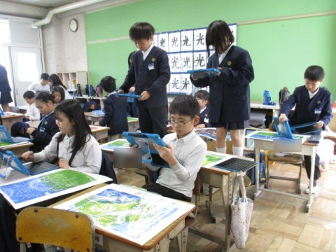 完成した版画の作品を,パソコンで写真保存しました。きれいな色の作品が仕上がりました。
