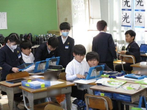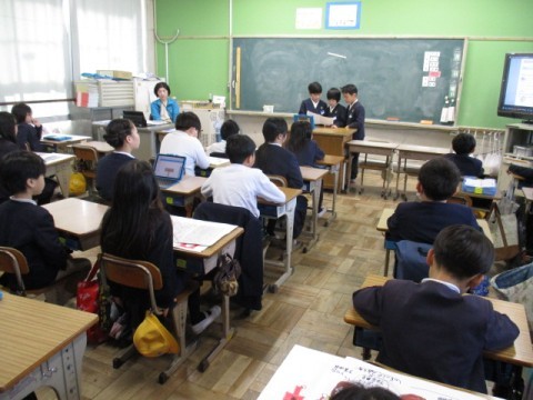 各グループにわかれて,明日の授業参観での発表準備を進めています。