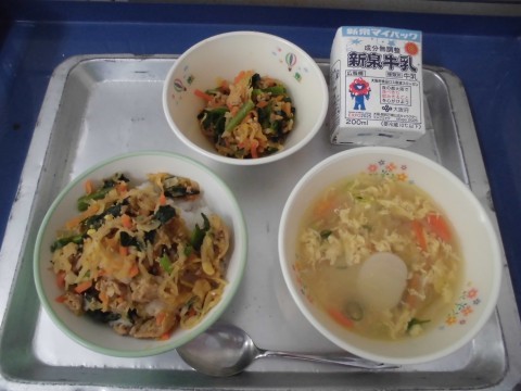 ビビンバは韓国料理で、「ごはんに混ぜる」という意味があるそうです。ビビンバがとてもおいしくて、子どもたちはいつもよりごはんをよく食べていました。