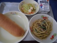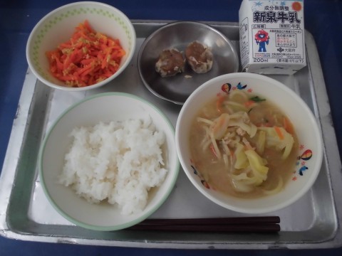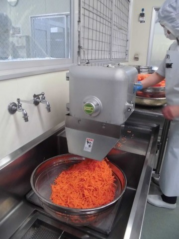 給食室にはしりしり器がないので、今日はスライサーでせん切りにしました。