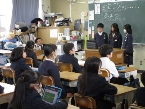 総合で学習している「SDG's」について,グループでまとめたことを発表しました。
