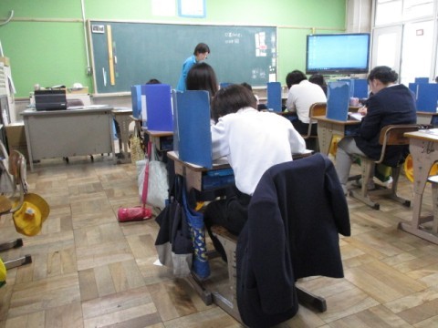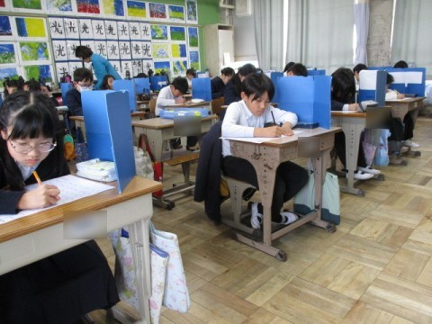 「漢字50問テスト」にチャレンジしています。集中して取り組んでいます。
