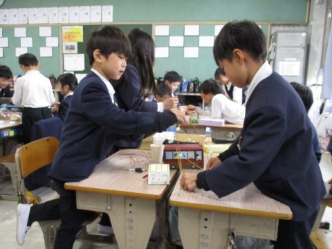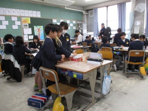 「はこの形を調べよう」の学習です。ねんど・竹ひごを使って立方体を作り,頂点や面の数を確認しました。