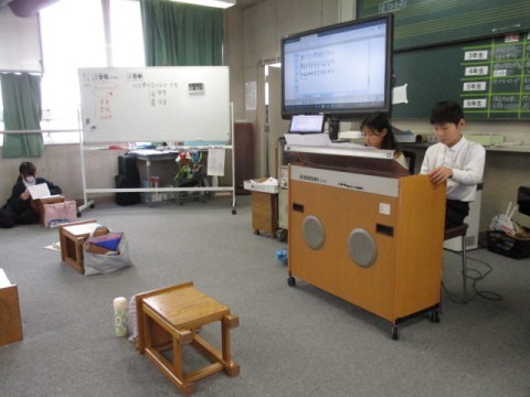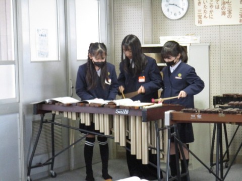 「威風堂々」の合奏をしています。各パートにわかれて練習しました。