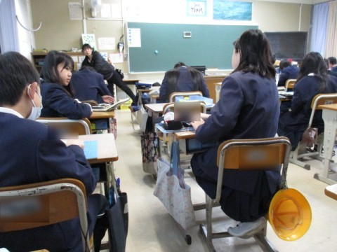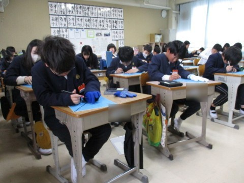 「一版多色」の版画を制作しています。下書きが終わった児童から,彫刻刀で掘り始めています。