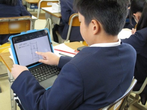 「箱の形を調べよう」の学習です。タブレットを使って,面や辺の特徴を調べました。