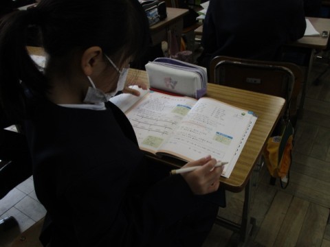 教科書の練習問題をしながら,「2年生のまとめ」をしています。