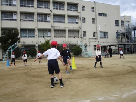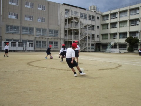 「キックサークル的あてゲーム」の学習です。ルールを守って,楽しく学習に取り組んでいます。