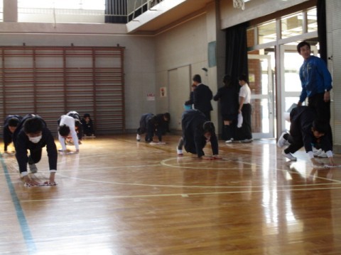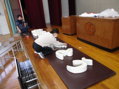 5年生の児童と職員で,卒業式の前日準備をしました。明日の卒業式では,6年生が立派に巣立ってくれることを願っています。