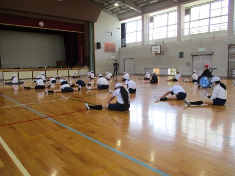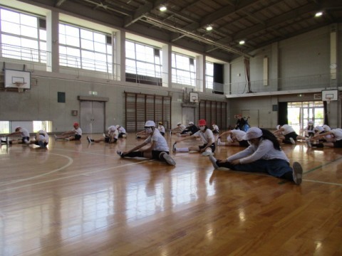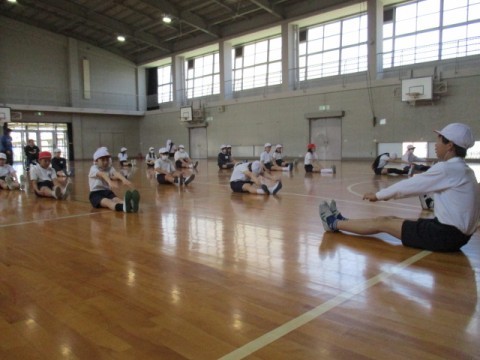 体つくり運動で「柔軟」「体力づくり」をしました。体の部分を意識しながら取り組んでいます。