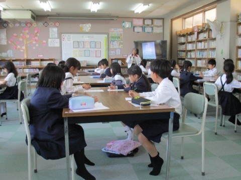 2年生になって初めて図書館へ行きました。「図書館のきまり」を確認しました。