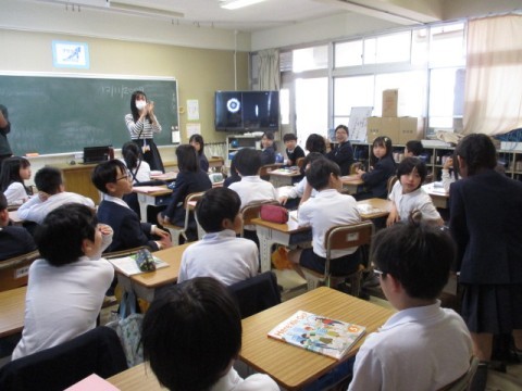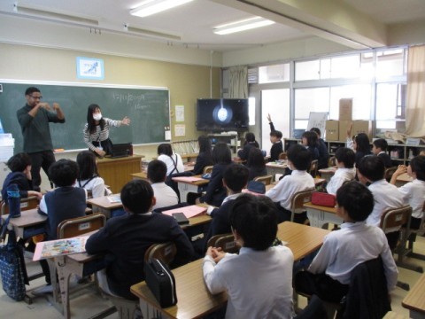 友だちと答えを伝え合いながら、英語に親しむ様子が見られました。