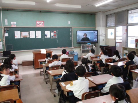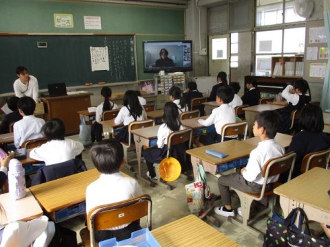 場所は離れていても、子どもたちはしっかりと話を聞いていました。