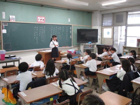 「私は○○です。好きな食べ物は○○です。」と、元気に発表していました。