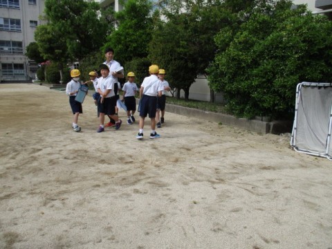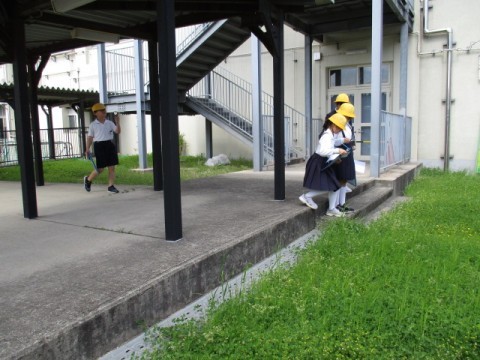「春のいきもの」の学習です。ルーペを持って,生きものを探しに運動場の周りを散策しました。