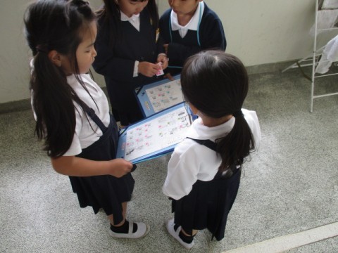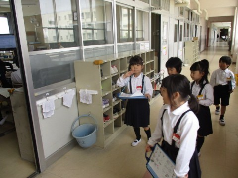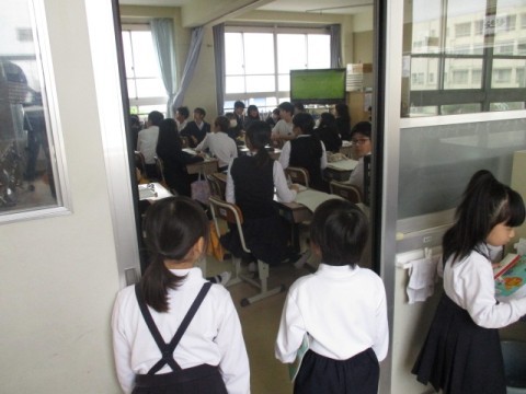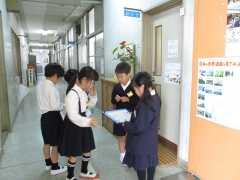 1年生と2年生が一緒になり、校内にどのような教室があるのかを見て回りました。