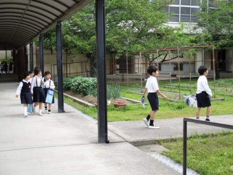 また、授業の様子を後方から静かに見学し、上の学年の学習の様子に興味をもっている様子が見られました。友だちと気づいたことを伝え合いながら、楽しく活動することができました。