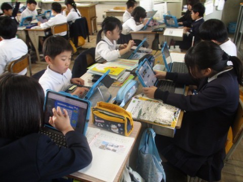 パソコンを使って、堺市の公共施設について調べていました。