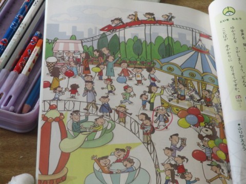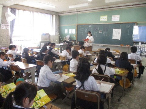 教科書に描かれているイラストを見ながら、先生の話をもとに考える学習に取り組んでいました。