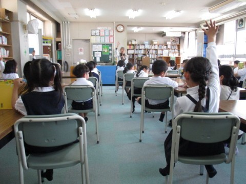 図書館へ行きました。学校司書の先生に,本の返却の仕方を確認しました。