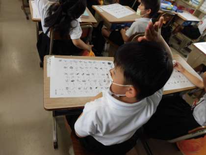 絵を見て,その言葉を考え,ひらがなを書く練習をしました。4月のころよりも成長しています!