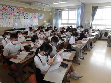 整数÷分数÷小数のような,いろんな数字がまざった計算の練習をしました。途中の式をしっかりと書くことで,確実に解こうと頑張っていました。
