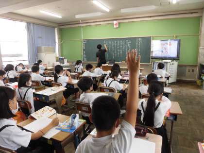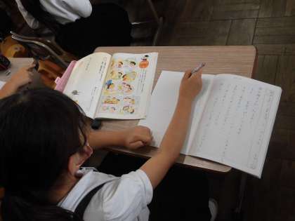 時を表す言葉を使って文づくりを楽しみました。熱心にノートに書いていました。