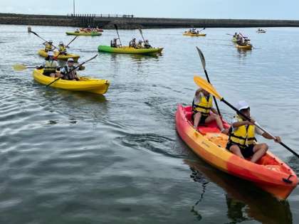 遠くまでいたカヌーグループも帰ってきました。カヌーの子たちも濡れていました。訳をきくと、どうやらみんなで水をかけあっていたようです。「楽しかったー」と言って戻ってきました。