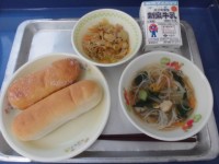11月8日(火)の献立はご飯 牛乳 はりはりうどん ひみこスナック ふりかけ(ゆかり)でした。11月8日は「いい歯の日」です。ひみこスナックはよくかんで食べる食品(昆布・大豆・さつまいも・ちりめんじゃこ・ごま)の入った揚げ物です。弥生時代のひみこの食事は噛む回数が現代の6倍だったそうです。ひみこはよい歯や歯ぐきをしていたという想定から「ひみこの歯がいいーぜ」というキャッチフレーズがうまれました。「よくかんで食べよう」「ひみこの歯がいいーぜ」「8020運動」「堺の恵み」「読書週間の歌」を歌いました。