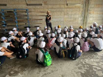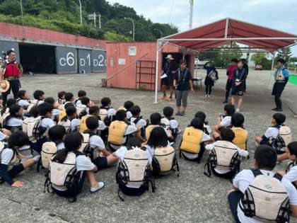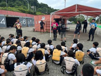 クイズラリーとカッターボートのグループが入れ替わります。2、3組がこれからカッターボートに乗ります。