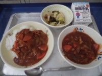 9月27日(水)の献立はご飯 牛乳 麻婆豆腐 やみつききゅうりでした。「早寝早起き朝ご飯」「大豆の大変身」「給食当番のきまり」「廊下歩行の歌」を歌いました。