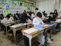 英語の先生に「あいさつ」と「名前を伝える」に取り組みました。