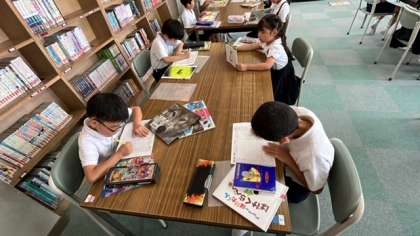 とても静かに本を読んでいました。借りた本は読書カードに記録しています。たくさん本を読んで欲しいですね。