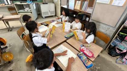 「スイミー」の学習では、音読発表会をするようです。グループで誰が何を言うのかやどのように音読すればよいのかなどを話し合っていました。とてもやる気満々です!
